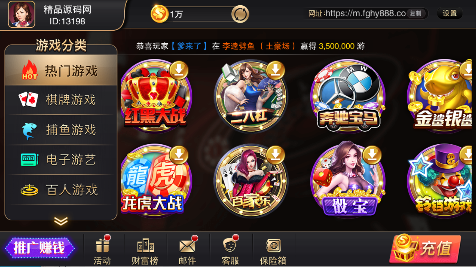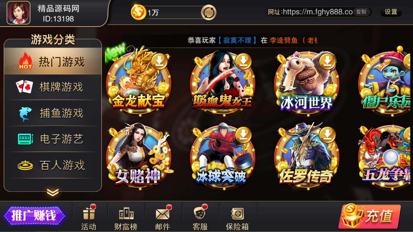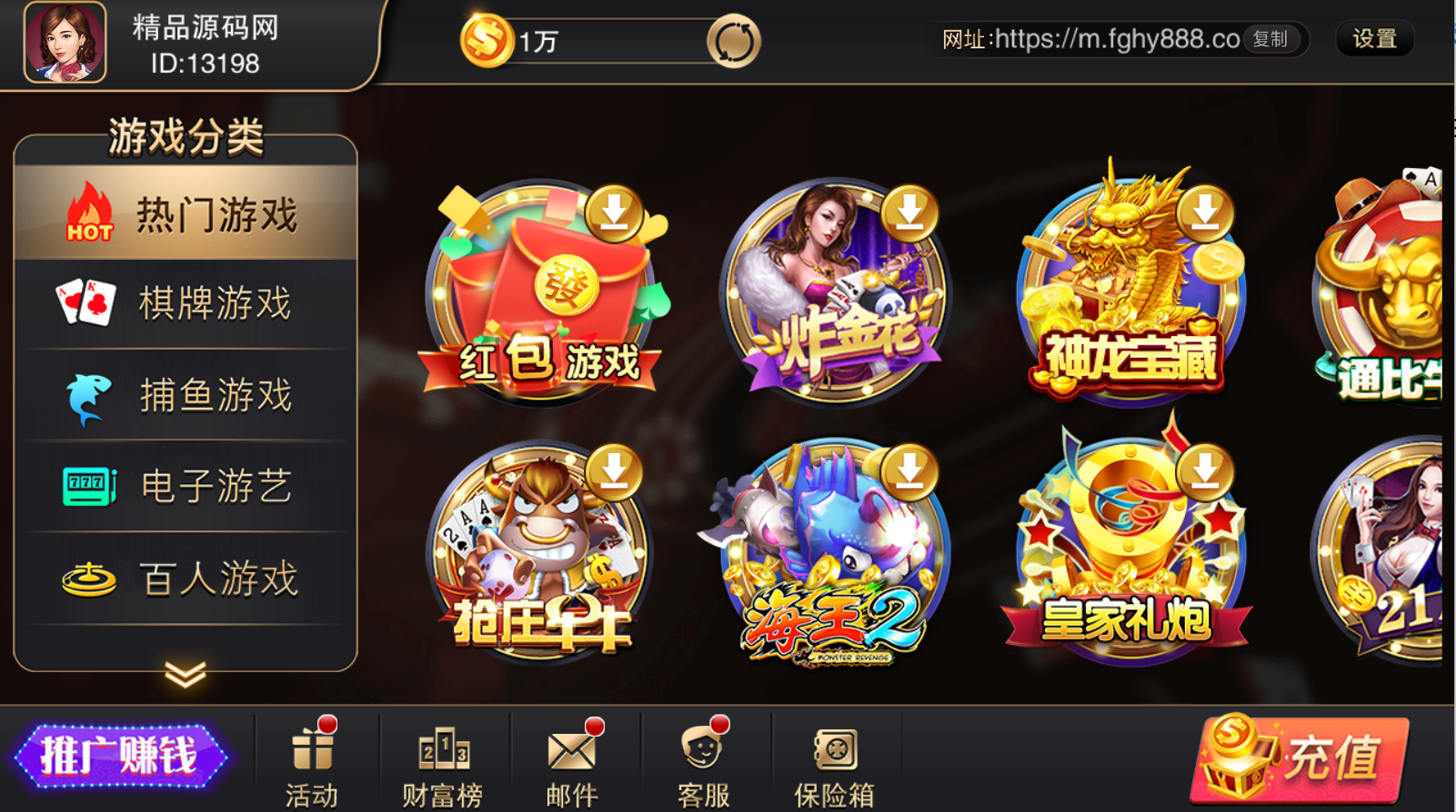 | 源码介绍: 游戏相当不错,站长亲自测试了下 功能都正常没啥问题,控制非常牛逼 亲测时顺便清除了程序中的后门文件和木马,并且录制了详细的搭建教程 就算是刚入门的小白使用本站配套程序跟着本站教程,亦能成功搭建,所有环境都已经配置好了,一键搭建即可 富贵5三国版平台子游戏:水果玛丽 李逵劈鱼 龙虎斗 21点 月光宝盒 性感女优 摇钱树 水果机 ATT翻牌机 缤纷果园 红包游戏 水果拉霸 冰球突破 冰河世界 五龙争霸 玉蒲团 奔驰宝马 百人牛牛 红黑大战 抢庄牛牛 通比牛牛 炸金花 女赌神 发发发 佐罗传奇 万圣节之夜 僵尸乐园 金龙献宝 艺妓录 多财多福 水浒传 金鲨银鲨 皇家礼炮 赛宝 百家乐 二八杠 神龙宝藏 海王2 金蝉捕鱼 运行环境: 服务器系统:linux 数据库版本:Mysql 亲测截图:> |