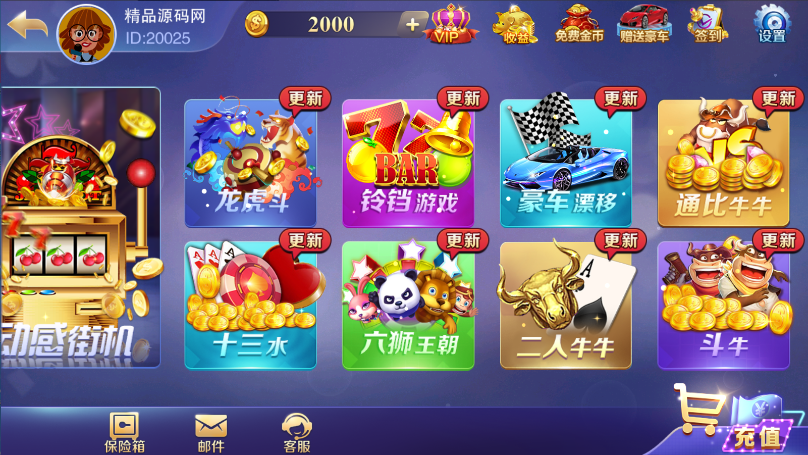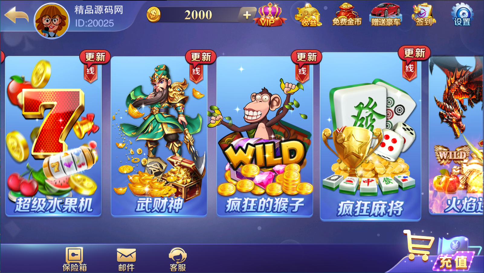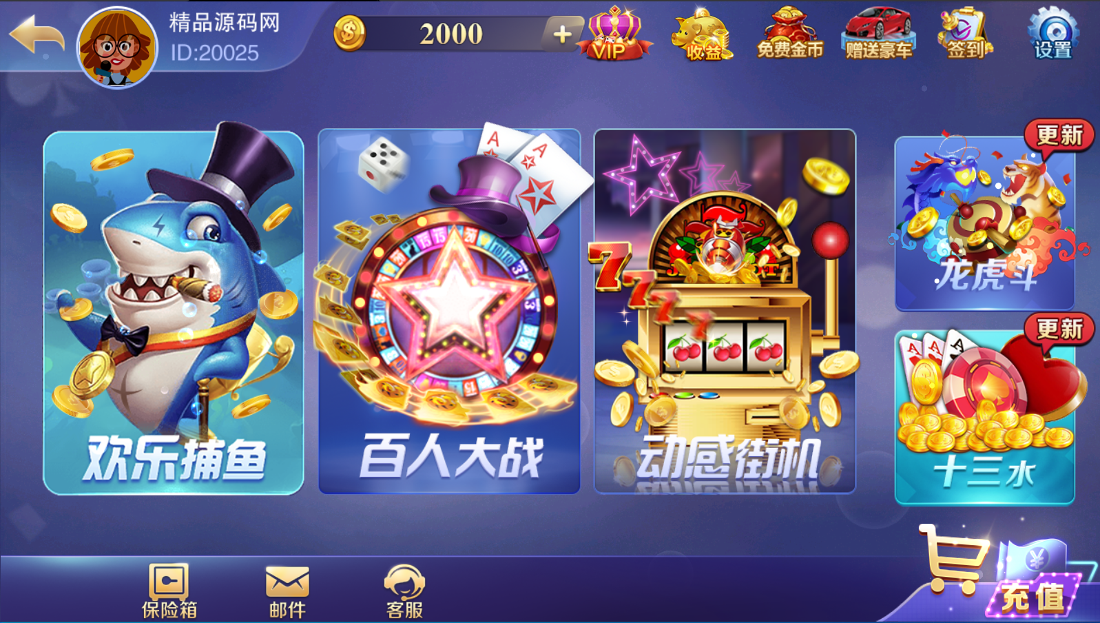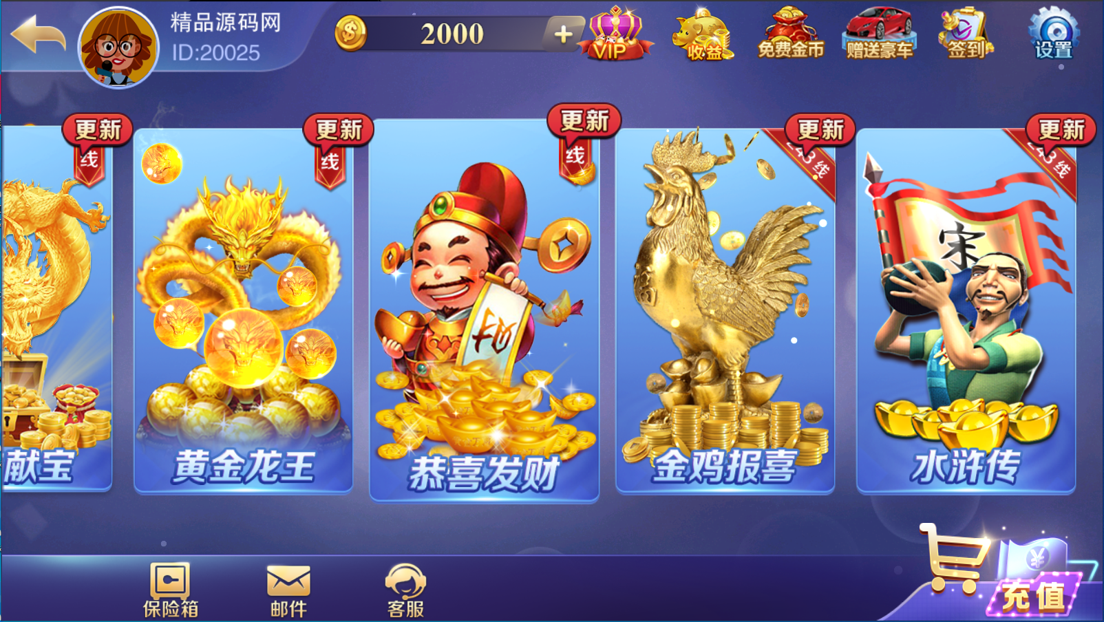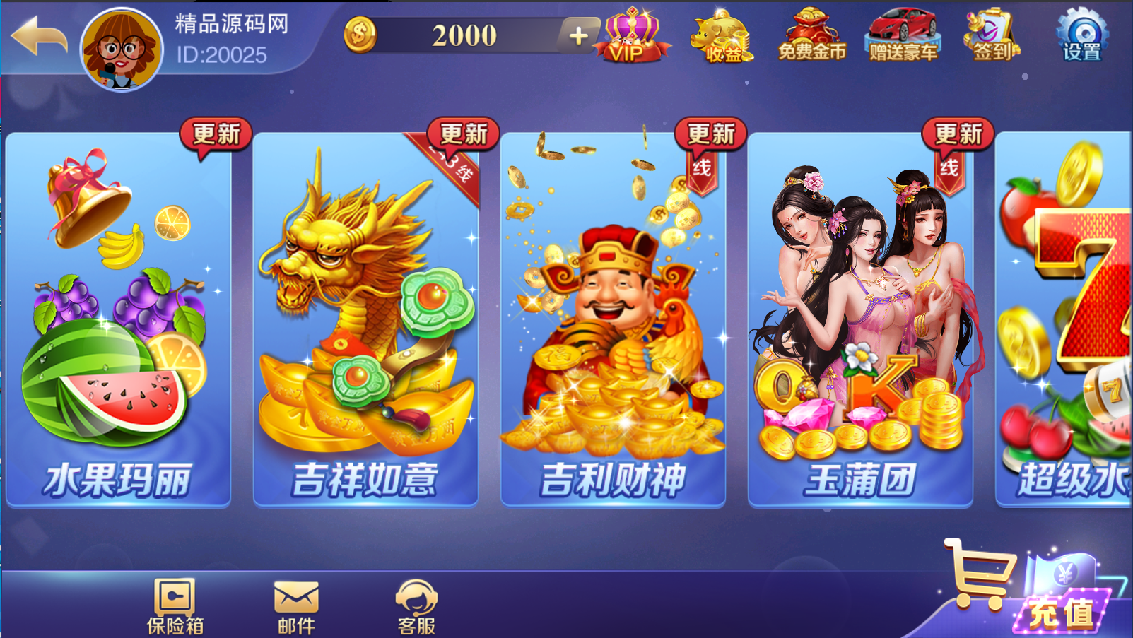 | 源码介绍: 游戏相当不错,站长亲自测试了下 功能都正常没啥问题 精美前端界面,子游戏众多,包括了拉霸类游戏,百人类游戏,捕鱼类游戏和棋牌类游戏,有智能陪玩机器人,代理系统,精准ID点控 亲测时顺便清除了程序中的后门文件和木马,并且录制了详细的搭建教程 整合修复优化了这套全新富贵3镜像,一键开通实例搭建部署,服务器环境什么的都搞好了,搭建起来非常方便 就算是刚入门的小白使用本站配套程序跟着本站教程,亦能成功搭建 平台共计43款子游戏: 拉霸类游戏:疯狂的7、武财神、疯狂的猴子、疯狂麻将、火焰连击、多财多福、财神赐福、上海百家门、五龙争霸、三只猴子、金龙献宝、黄金龙王、恭喜发财、金鸡报喜、水浒传 百人类游戏:红黑大战,龙虎斗,宝马游戏、六狮王朝、飞禽走兽、五星宏辉、金鲨银鲨、水果机、森林舞会、关公战秦琼、百人牛牛、百人乐、豪车漂移、摇一摇、推简子 捕鱼类游戏:神龙宝藏、摇钱树、李逵劈鱼、皇家礼炮、金蟾捕鱼、淡水鱼、海王2 扑克类游戏:跑得快,十三水,斗地主,智勇三张、二人牛牛、通比牛牛、斗牛 富贵3常用修改:: 富贵3修改LOGO路径:/assets/logo.png 富贵3修改IP文件:/assets/customerInfo.xml 富贵3头像路径:/assets/Head/目录下8个PNG头像资源 富贵3背景音乐:在热更新包:JJHall_111.zip,解压后替换/JJHall_111/Phone/Sounds/BGM1.u3d 亲测截图: |