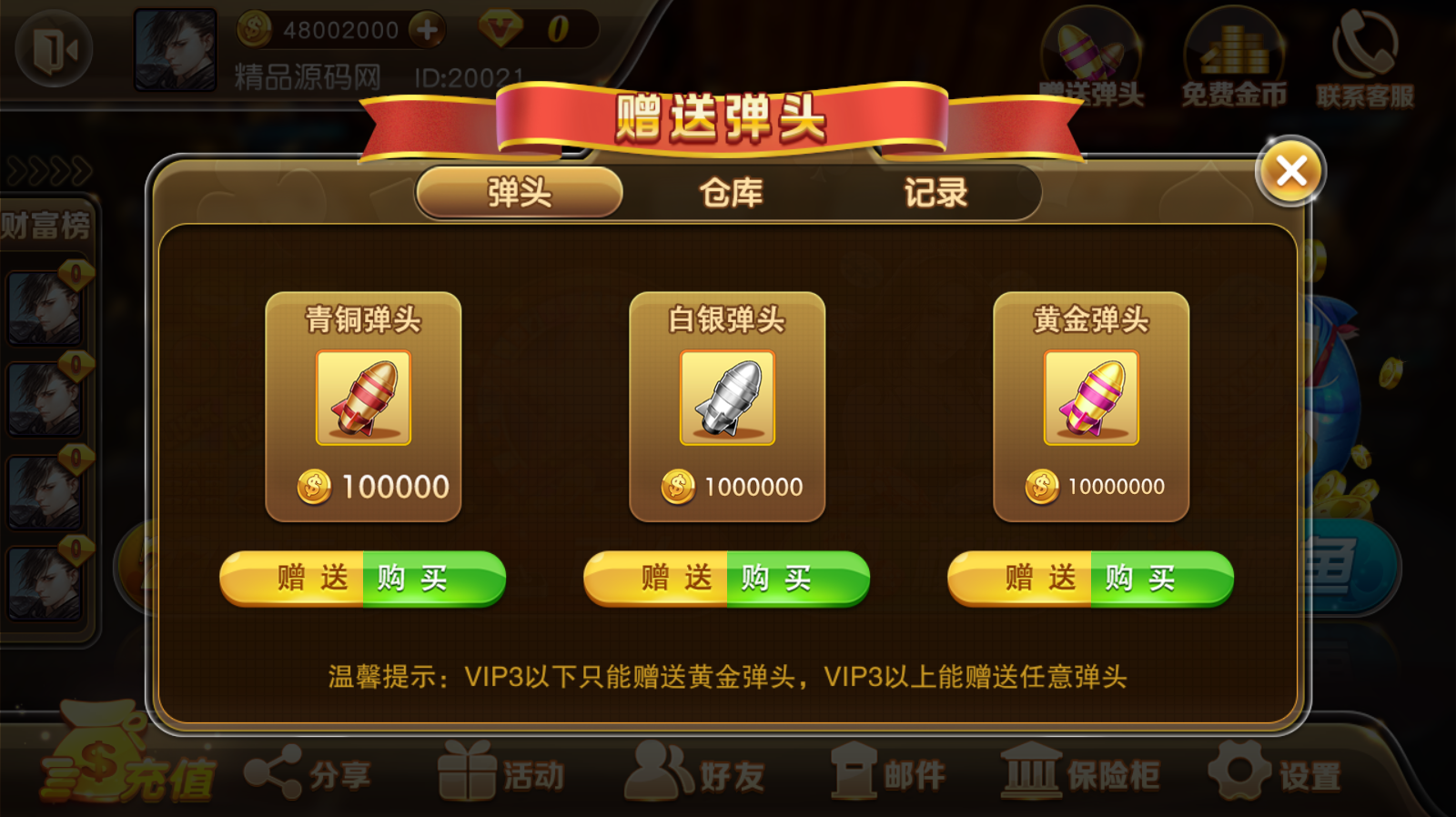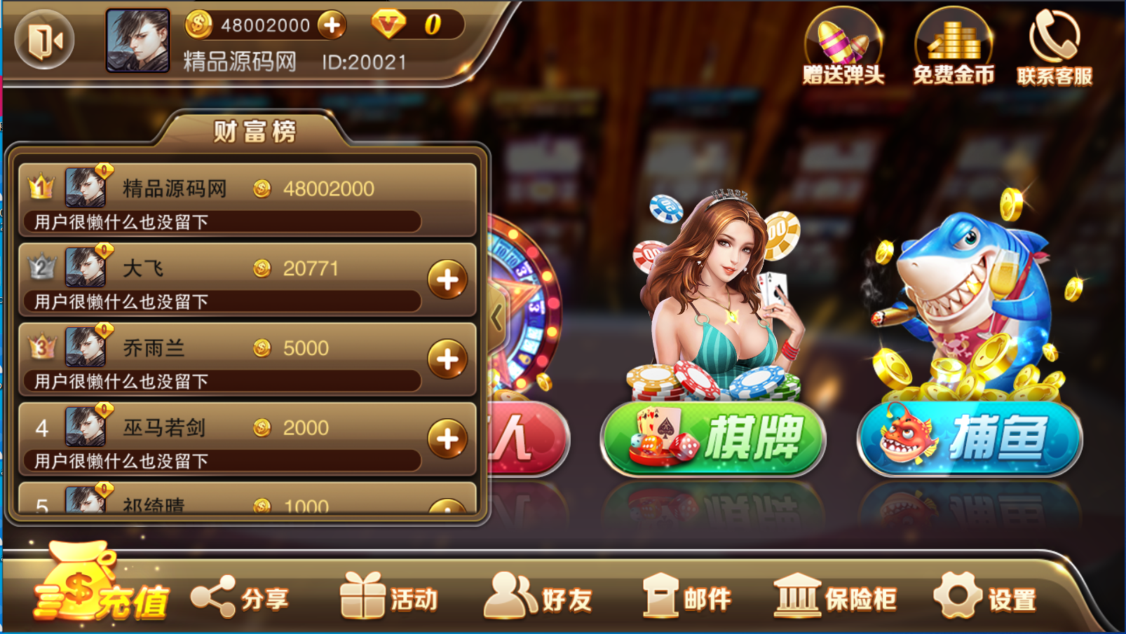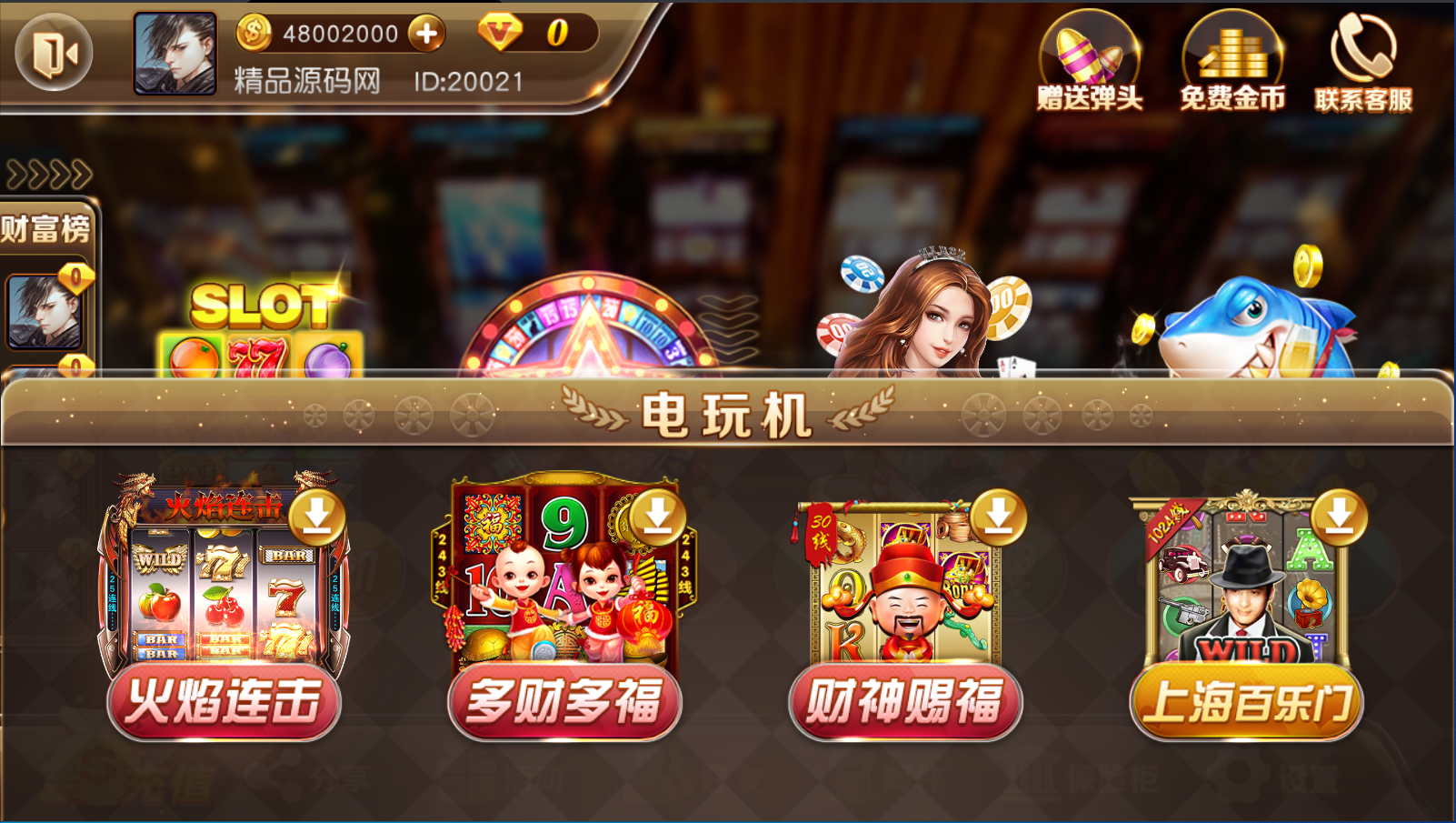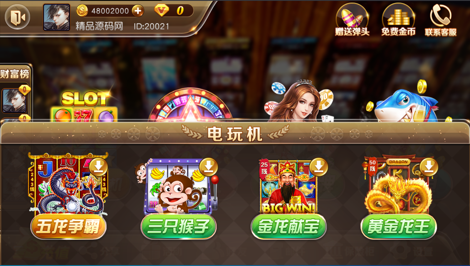 | 源码介绍: 游戏相当不错,站长亲自测试了下 功能都正常没啥问题 精美前端界面,子游戏众多,包括了拉霸类游戏,百人类游戏,捕鱼类游戏和棋牌类游戏,有智能陪玩机器人,代理系统,精准ID点控 亲测时顺便清除了程序中的后门文件和木马,并且录制了详细的搭建教程 整合修复优化了这套全新富贵3镜像,一键开通实例搭建部署,服务器环境什么的都搞好了,搭建起来非常方便 就算是刚入门的小白使用本站配套程序跟着本站教程,亦能成功搭建 平台共计43款子游戏: 拉霸类游戏:疯狂的7、武财神、疯狂的猴子、疯狂麻将、火焰连击、多财多福、财神赐福、上海百家门、五龙争霸、三只猴子、金龙献宝、黄金龙王、恭喜发财、金鸡报喜、水浒传 百人类游戏:红黑大战,龙虎斗,宝马游戏、六狮王朝、飞禽走兽、五星宏辉、金鲨银鲨、水果机、森林舞会、关公战秦琼、百人牛牛、百人乐、豪车漂移、摇一摇、推简子 捕鱼类游戏:神龙宝藏、摇钱树、李逵劈鱼、皇家礼炮、金蟾捕鱼、淡水鱼、海王2 扑克类游戏:跑得快,十三水,斗地主,智勇三张、二人牛牛、通比牛牛、斗牛 富贵3常用修改:: 富贵3修改LOGO路径:/assets/logo.png 富贵3修改IP文件:/assets/customerInfo.xml 富贵3头像路径:/assets/Head/目录下8个PNG头像资源 富贵3背景音乐:在热更新包:JJHall_111.zip,解压后替换/JJHall_111/Phone/Sounds/BGM1.u3d 亲测截图: |