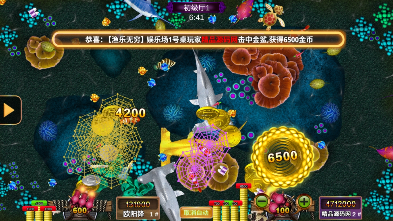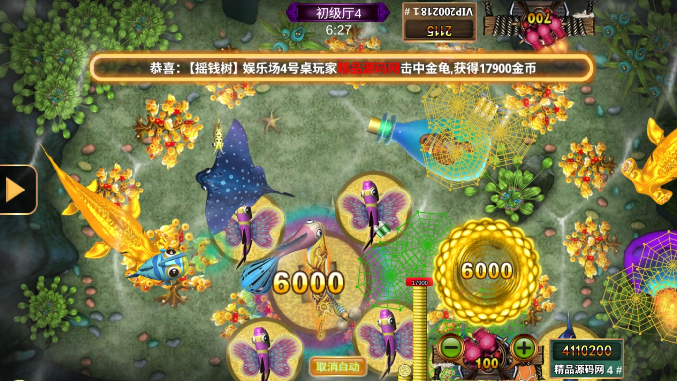 包含游戏:摇钱树,金蟾捕鱼,李逵劈鱼,单挑,牛魔王,美人鱼,渔乐无穷,幸运六狮,单挑(ATT连环炮)金鲨银鲨,空战英豪,火凤凰,神龙宝藏,奔驰宝马,史前巨鳄,金皇冠,八爪鱼。