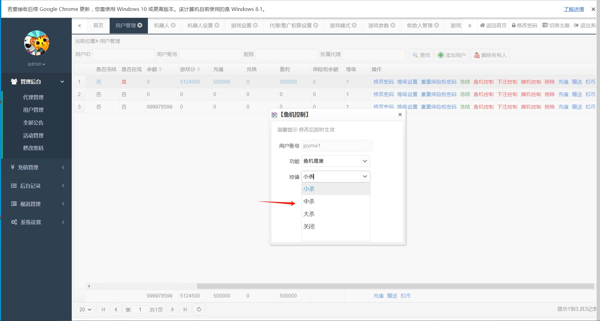 界面UI是1:1仿以前市面上的星力电玩,控制也十分给力,全局库存控制+精准点控,也算是经典的电玩街机游戏平台了。